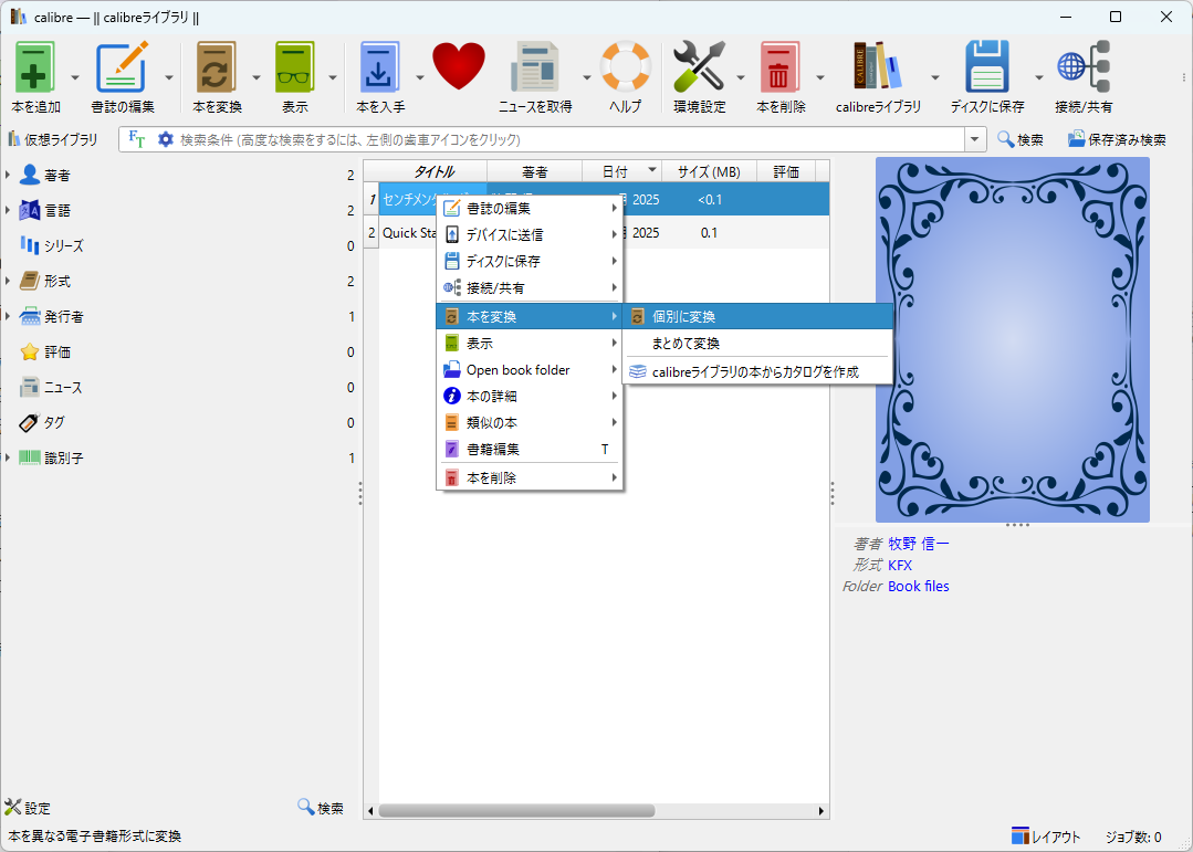 右クリックで選択して「本を変換」
