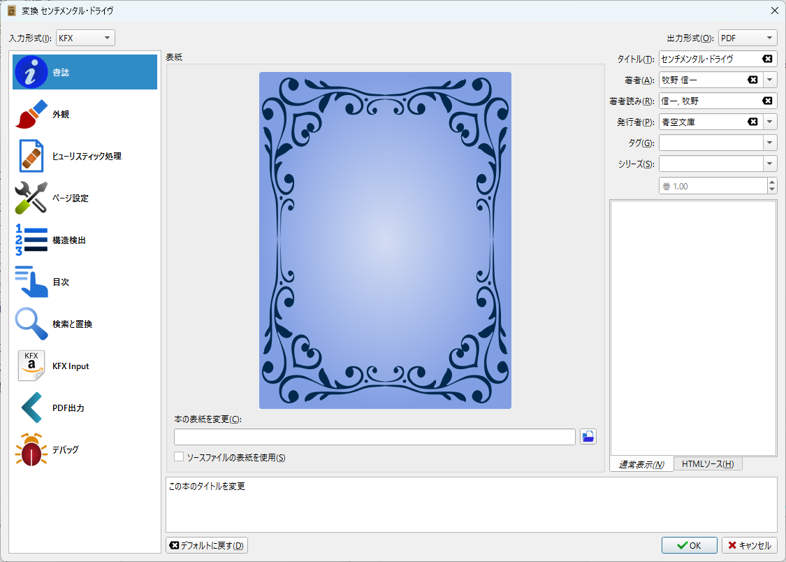左上が「KFX」であることを確認し、右は「PDF」にする