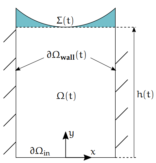 管内の液体領域$\Omega(t)$の体積を$V$とする 流体の密度$\rho$は、$\frac{質量}{体積}$なので、 微小体積$dV$の乗算で$dV$内の質量が分かる 即ち、領域内全体の流体の質量は、