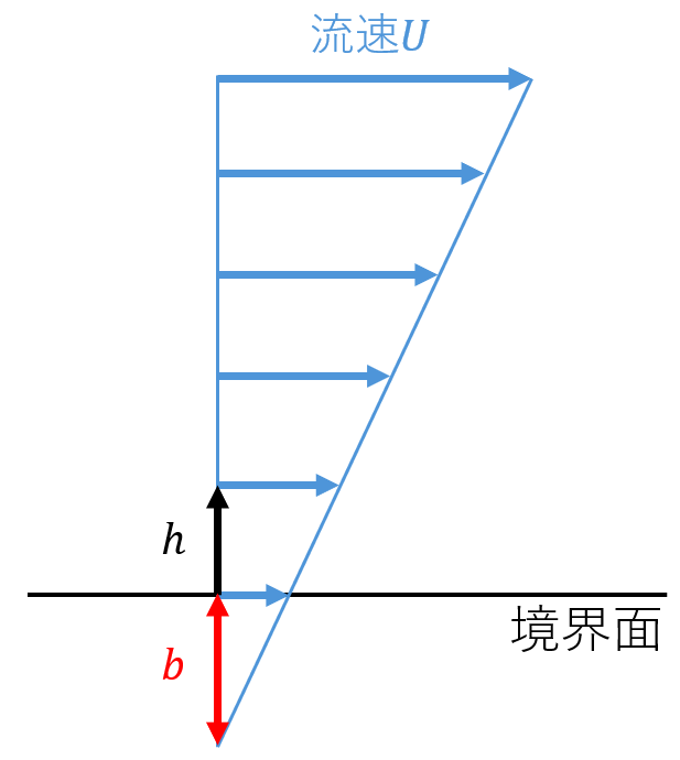 このとき、境界面の流速は$U_f$分だけ減衰する