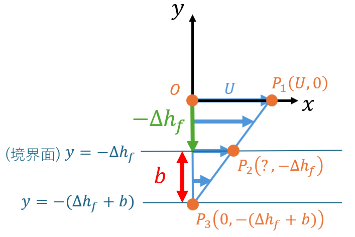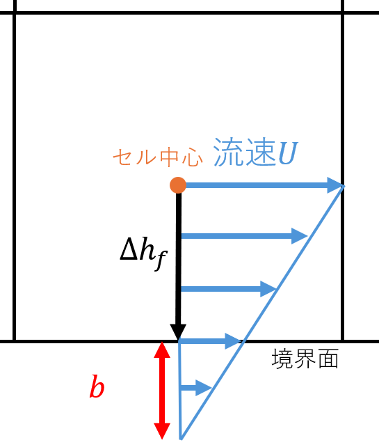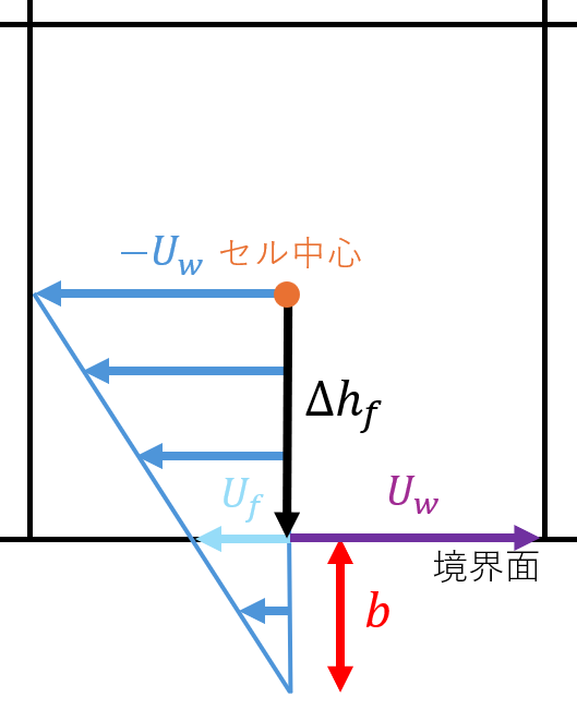 $\Delta h_f[m]$:セル中心から境界面までの距離