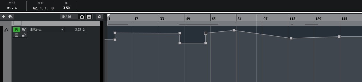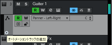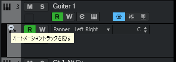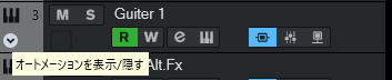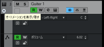 トラックごとのオートメーションを表示するには、トラックの左下にカーソルを合わせると表示されるボタンを押下