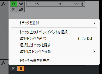 オートメーショントラックを削除するには、右クリック→選択トラックを削除