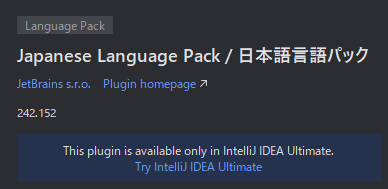 install Plugin From Disk..から、C:\Program Files\JetBrains\IntelliJ IDEA [バージョン]\plugins\localization-ja\libの中のlocalization-ja.jarを選択