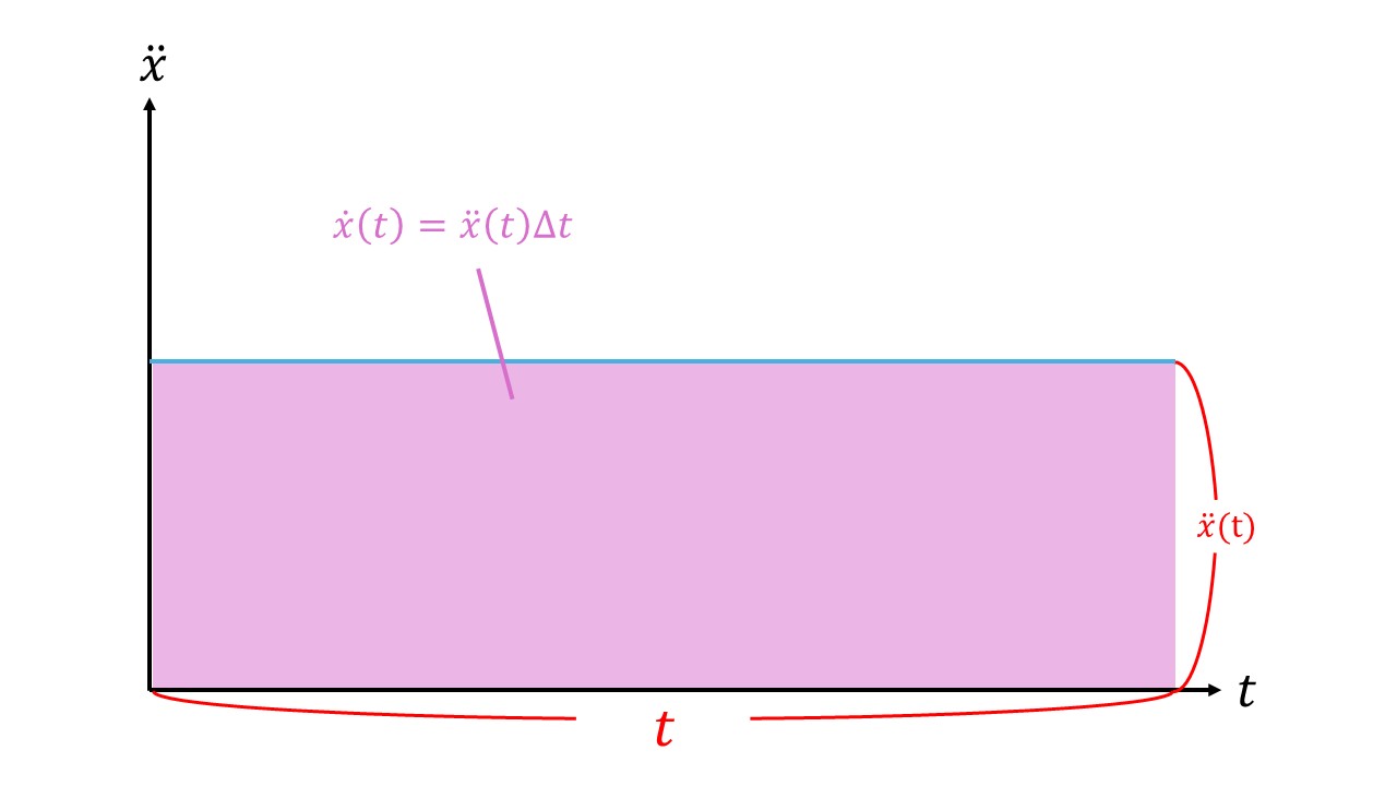これが$\ddot{x}t$の表すところであり、加速度曲線(下図)の面積にあたる。