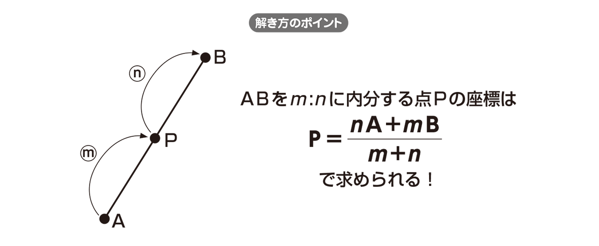 $\frac{n}{m+n},\frac{m}{m+n}$はつまるところA-B間をPで分割したときの割合である