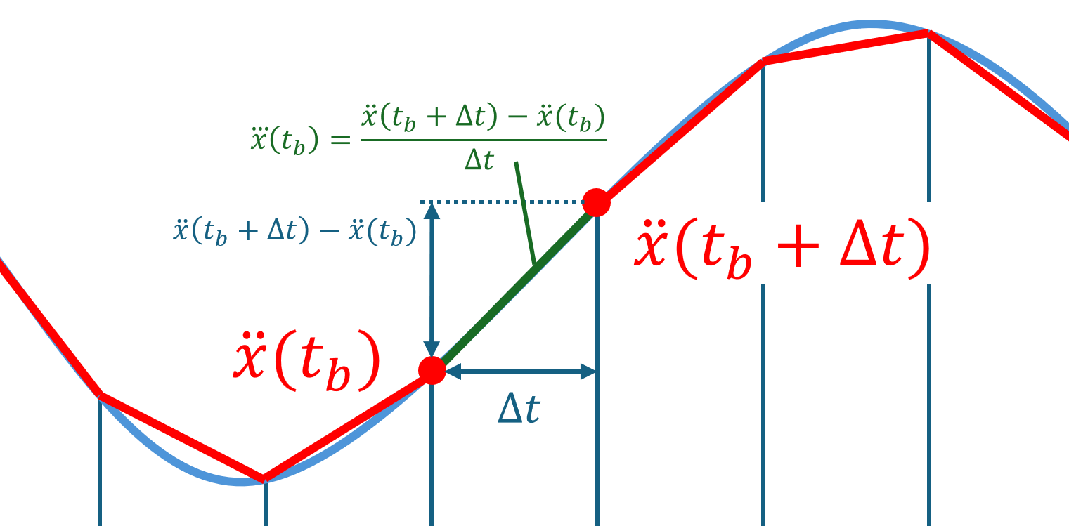 \dddot{x}(t_b)=\frac{\ddot{x}(t_b+\Delta t)-\ddot{x}(t_b)}{\Delta t}