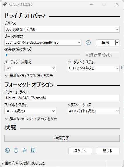 USBブートメモリでUbuntuをインストール