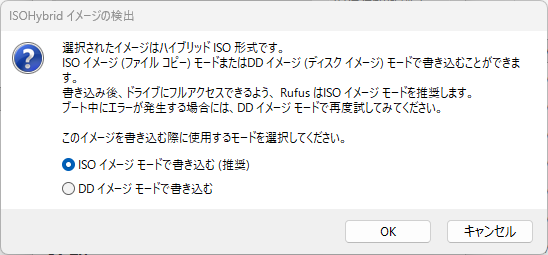 「スタート」すると、こんなことを聞かれるがディスクドライブじゃないのでそのまま「OK」