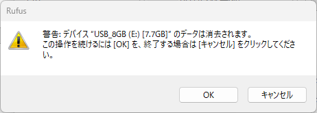 本当にブートメモリ用のやつか確認してから「OK」