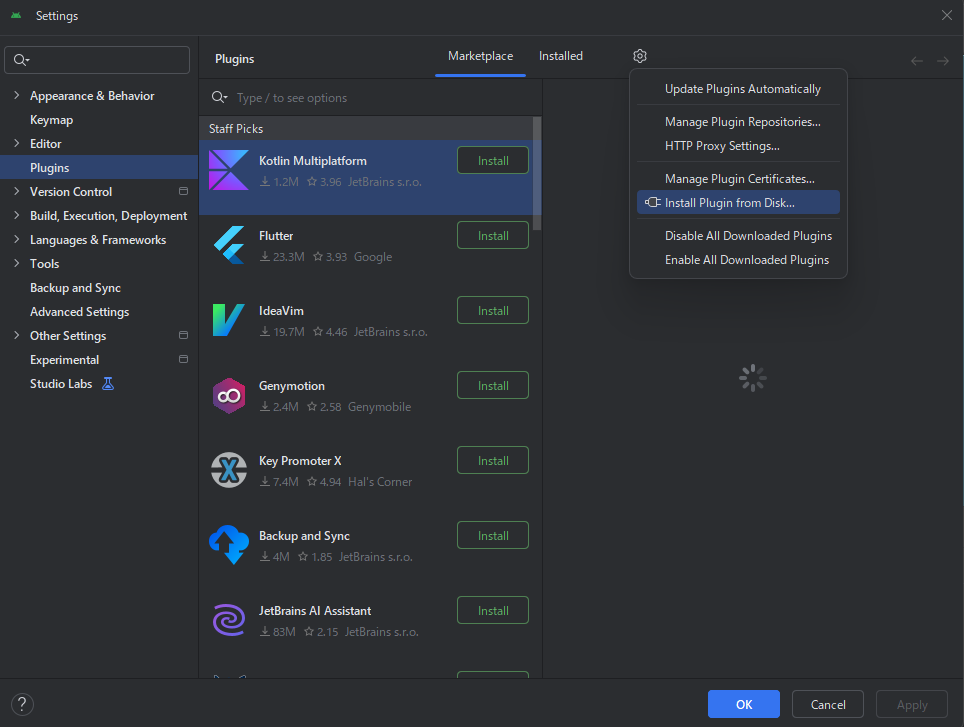 2025年版のAndroidStudioではすぐに日本語化プラグインが使えません
