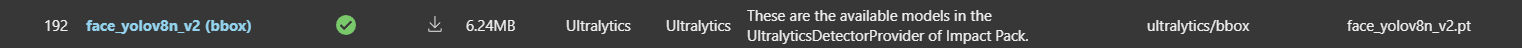 次に同じ"Manager"メニューから"Model Manager"を開いて、face_yolov8n_v2 (bbox)とViT-B SAM modelをインストール